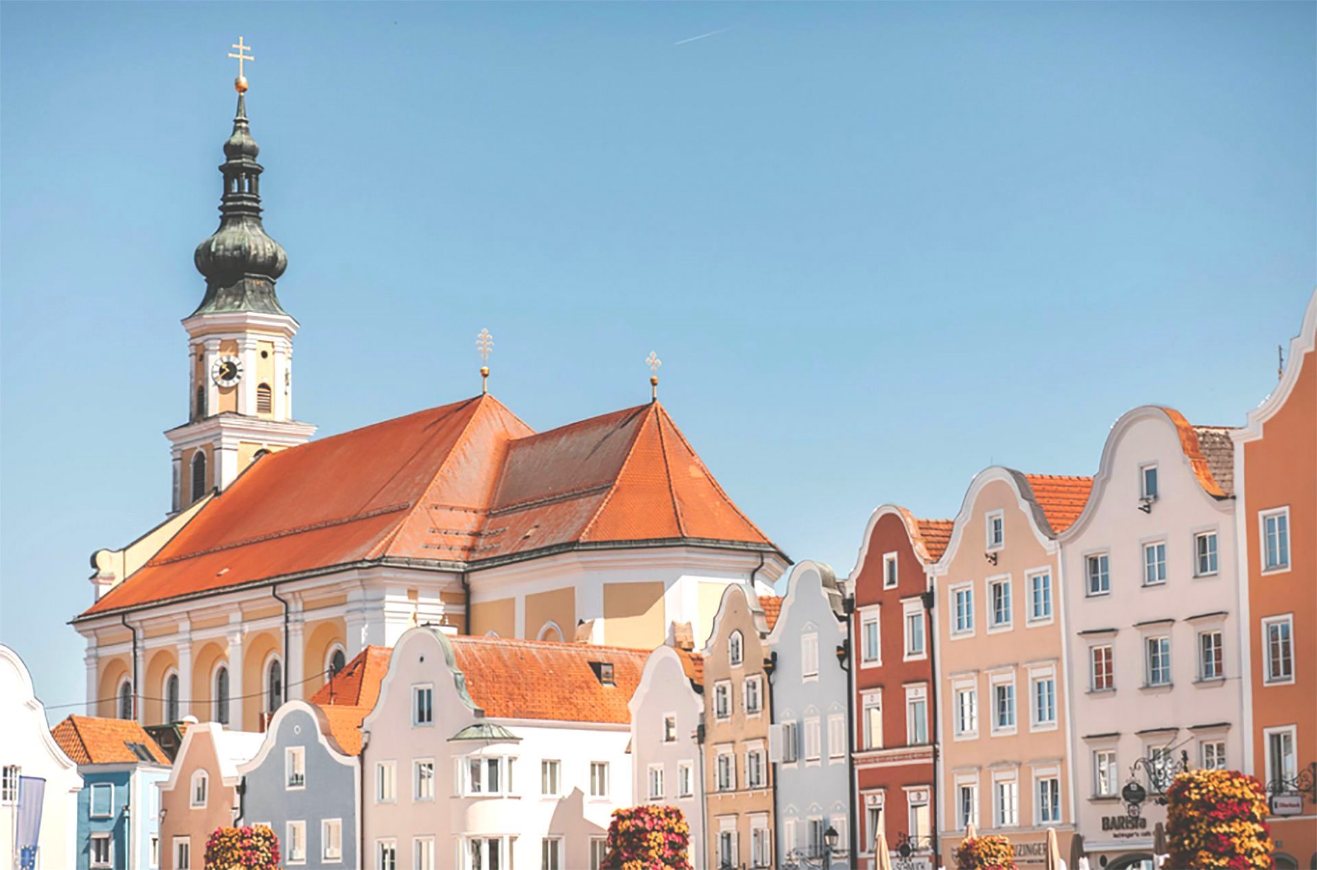 Nur wenige Kilometer entfernt liegt die charmante Innstadt Schärding in Österreich. Die farbenfrohen Barockhäuser der Silberzeile, die romantische Promenade am Inn und gemütliche Cafés machen den Ausflug perfekt.